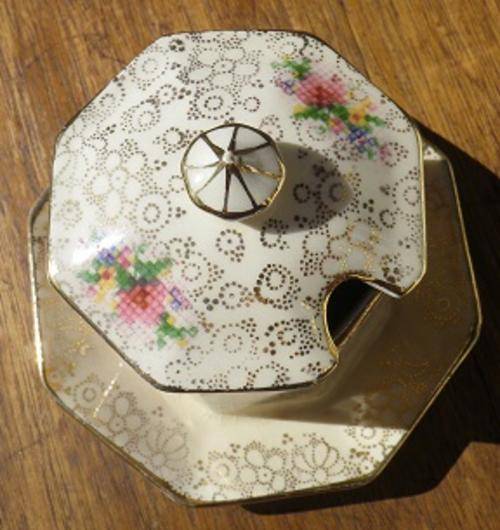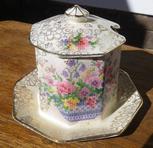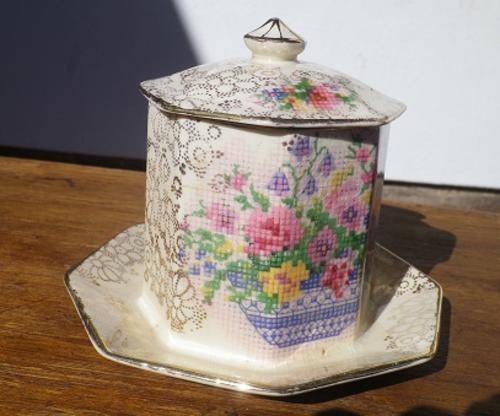 MARVELLOUS VINTAGE H&K TUNSTALL LIDDED JAM/MARMALADE JAR WITH BUILT IN PLATE