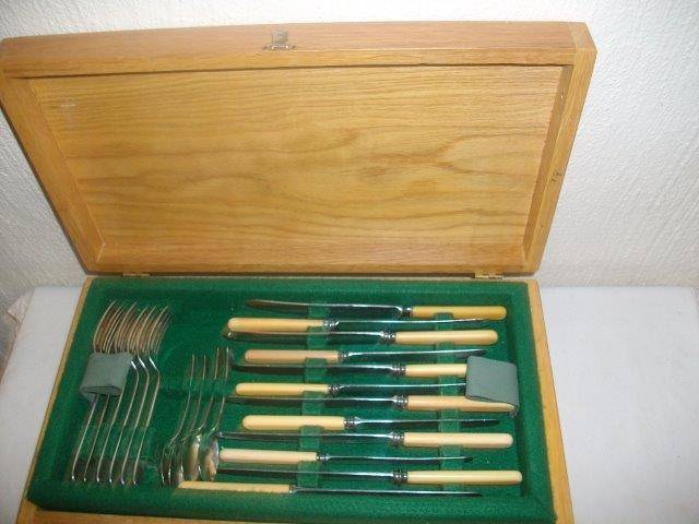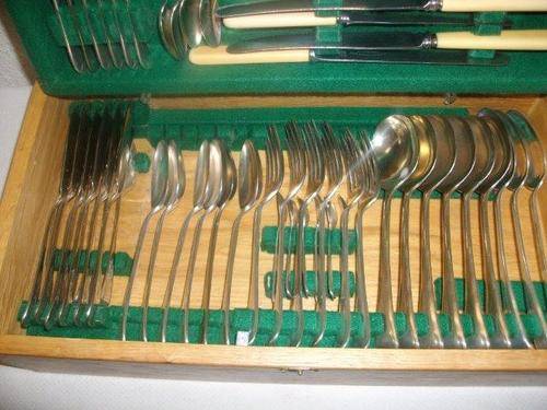 Kindly note the shipping will be R100 or collection welcome in the howick area this lovely wooden oak cased canteen set filled with vintage cutlery items there is +- 62 peaces in the set the set is not complete there are two tea spoons missing other wise seems complete and in good used condition some wear no the knife blades due to use other wise in good used conditionplease have a look at my other listings *free sprit*Thank you