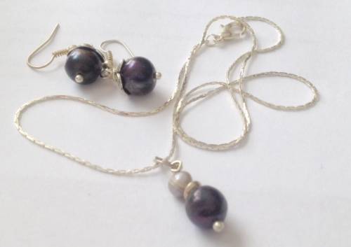 LOVELY BLACK FRESHWATER PEARL EARRINGS AND PENDANT - FREE CHAIN