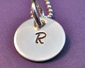 This dainty 9mm sterling silver round tag can be stamped with any single letter or symbol of your choice.