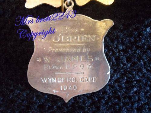 Engraved: Bro E. O`Brien presented by W.James Rt. Wor. P.P.G.W.