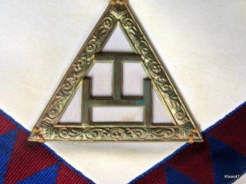 MASONIC : ROYAL ARCH - COMPANION APRON : 40x35cm : TOYE & CO : STAMPED DORIC V C.P.I. MANUF JHB