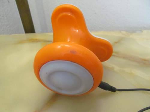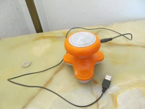IN PRISTINE CONDITION, THIS ITEM IS A MINI MASSAGER WHICH CONSISTS OF THREE GREY PADDED PORTIONS UNDERNEATH THE CENTRAL BODY. A PORTABLE MINI MASSAGER FOR WHOLE BODY USE SUITABLE FOR HEAD, NECK, SHOULDERS, BACK, HANDS, FEET ETC. THE ITEM IS BOTH BATTERY OPERATED (PENLIGHT BATTERIES) AS WELL AS USB CONNECTED. WITH NO ON/OFF SWITCH THE MASSAGER FUNCTION BY MEANS OF GENTLY PRESSING DOWN ON THE SWIVEL TOP WHICH THEN ACTIVATED THE ITEM