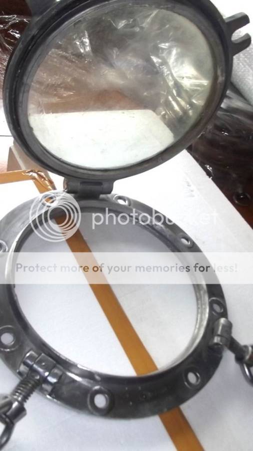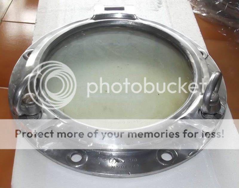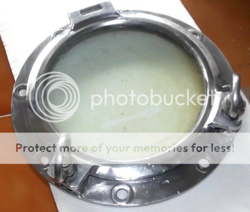 Original 1960s SOLID ALUMINUM PORTHOLE WINDOW. TWO-DOG VERSION. 18-INCHES ACROSS. 12-INCH GLASS OPENING (ORIGINAL TOUGHENED GLASS). INNER MOLDING RIM PRESENT ON THE BACK SIDE THAT MAKES IT IDEAL FOR MOUNTING BACK ON A VESSEL (OTHER SELLERS HAVE THIS RIM REMOVED BECAUSE IT IS THE PART EXPOSED TO THE SEA AND RECLAIMED PORTHOLES OFTEN HAVE THIS PART ROTTEN - AS FAR A USABILITY GOES SUCH RIMLESS PORTHOLES ARE NOTHING BUT SCRAP)