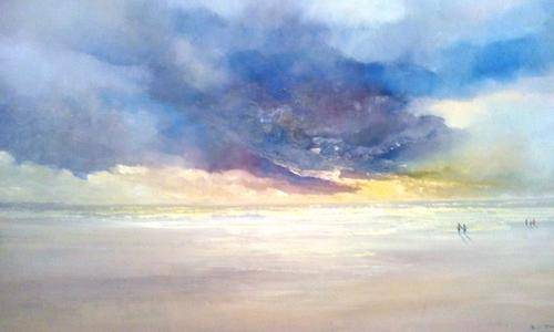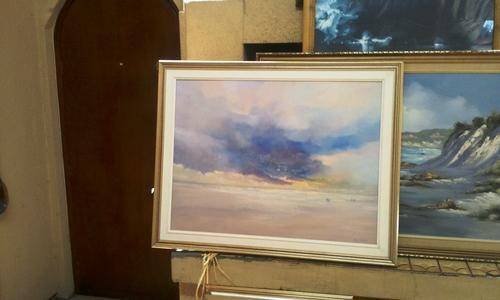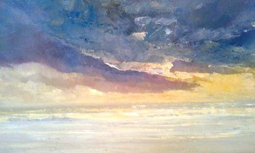 He started painting in 1981. He is a self taught professional artist. He has developed a style of painting large landscapes and seascapes in oil with magnificently dramatic skies.