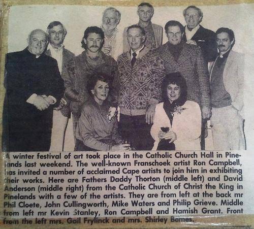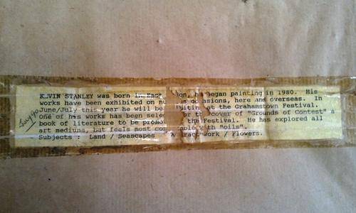 HERE IS A PHOTOGRAPH OF ALL THE ARTISTS THAT EXHIBITED AT THE CHURCH AND A PHOTO OF THE ARTIST, KEVIN STANLEY PASTED ON THE BACK OF THE PAINTING