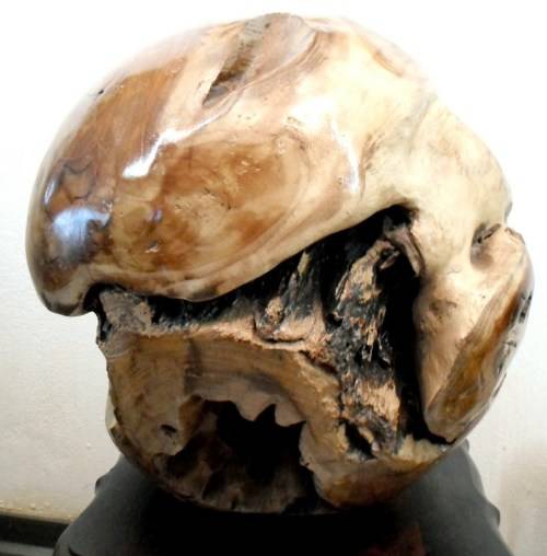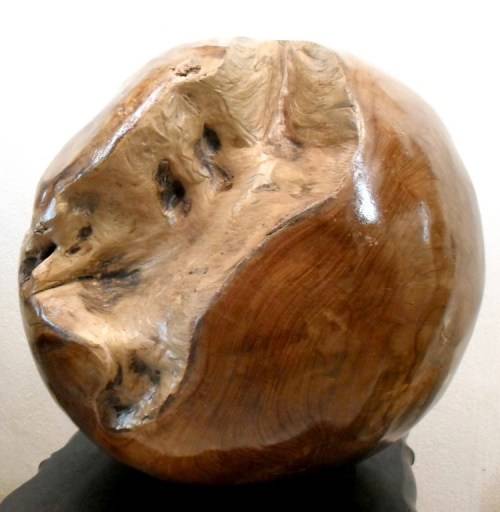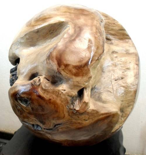 An absolute magnificent display piece! This very large wooden ball is sculptured out of the root of a tree and the results is simply amazing! It has many facets of rough and polished surfaces and will definitely be the focal point in any display! This wooden ball measures 34cm in diameter. A unique opportunity to own a very special piece,