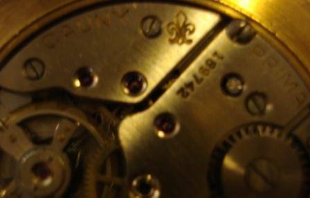 Onion crown winds perfectly. Sub-second at 6. Textured dial signed Cauny Prima. Inside sub-second it reads: "Ancre 15 Rubis - La Chaux de Fonds".