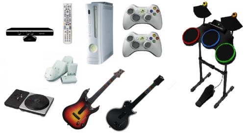 Including 2x wireless controllers, media remote, dual charge stand, 2x guitar controllers, drum controller and DJ controller
