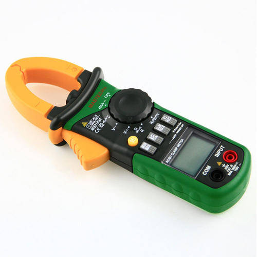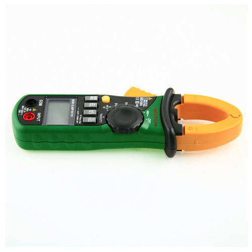 Features: 1. Perform measurements of AC/DC voltage and current, resistance, frequency, duty, capacitance, as well as continuity and diode test. 2. Display: 4000 counts with analog bar LCD display 3. Maximum voltage between terminals and earth ground: DC 1000V or AC 750V 4. Over range protection for all ranges 5. Reading hold function 6. Square value measuring function (at AC A and AC V range) 7. Auto zero function (at DCA range) 8. Maximum & minimum value measuring function 9. Converte rate: 3 times/sec 10. Bar graph: 30 times/sec 11. Auto power off 12. Continuity test 13. Diode test 14. MAX. diameter for conductor: Ф26mm 15. Secondary injection molding case 16. Conform to the IEC1010-1 & IEC1010-1-032 standards Specification: Model: MS2108A Double Insulation: Protection class CAT III 600V and pollution degree 2 Display: 4000 counts DC Voltage Accuracy: 400mV±0.1%;4V/40V/400V±0.7%;1000V±0.8% AC Voltage Accuracy: 4V/40V/400V±0.8%;750V±1.0% DC Current Accuracy: 40A/400A ±2% AC Current Accuracy: 40A/400A ±2% Resistance Accuracy: 400Ω/4kΩ /40kΩ /400kΩ/4MΩ± 0.8%,40MΩ±1.2% Capacitance: 40nF/400nF/4μF/40μF /400μF /4000μF±4% Frequency Accuracy: 10Hz/100Hz/1KHz/10kHz/100kHz/1MHz/10MHz±1.5%, 10~10KHz±2% Duty cycle: 0.1% ~ 99% ±3% Operating Temperature:0â ~ 40â (32°F ~ 104°F) Storage Temperture:-10â ~ 50â(10°F ~ 122°F) MAX. diameter for conductor: Ф26mm Dimension: 208mm x 78mm x 35mm Power: 1.5V (AAA) x 3(Not included) Package included: 1PC x Clamp Meter 1PC x Set of Test Leads 1PC x Carry Bag 1PC x User Manual