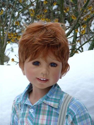 Key Features: ¿Classic Nursery Rhyme theme (Jill available on a separate web site page) ¿Great addition to Monika's Storybook Dolls ¿Ht 48" ¿Full body vinyl sculpt with ball joints in the elbows and ?knees and wrists (he can sit and stand) ¿Very sweet expression with open mouth and beautifully sculpted teeth ¿Approximate age of 6-7 year old ¿Dressed in a spring plaid shirt; suspenders; denim pants and blue sneakers ¿Outfit coordinates with Jill for a great Nursery Rhyme pair ¿Strawberry blonde hair with blue eyes (also available as a Blonde with green eyes in separate listing) ¿Wooden Doll stand included ¿Limited Edition 350 pieces ¿For those who like to redress their dolls approximate ?outfit size: 4T-6T (US) 104/110/116 (Europe) All Masterpiecedolls are "phthalatfrei" and meet the EU "Reach" program requirements.