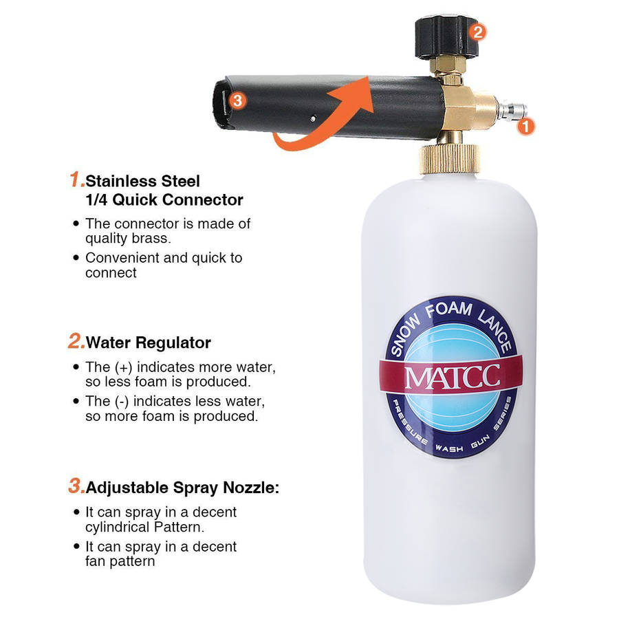 MATCC 1L Bottle Snow Foam Lance Car Washer Tool with 5PCS Pressure Washer Spray MATCC 1L Bottle Snow Foam Lance Car Washer Tool with 5PCS Pressure Washer Spray