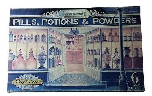 Matchbox 6-pack "Pills, Potions and Powders" Limited Edition gift set with 6 mint Model A Ford Vans. Unfortunately the front cover and some sides of the packaging are slightly faded from storage but the models are mint, no fade.