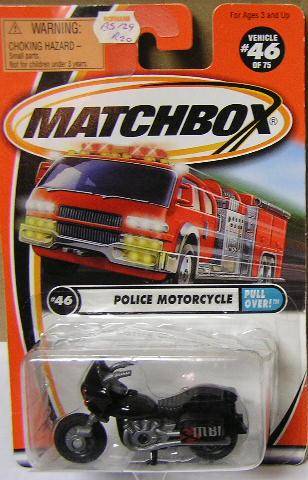 Matchbox Diecast Model No 46 , Police Motorcycle Bike , 2000 on card , new in blister pack