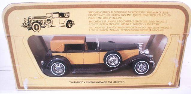 On auction are a Matchbox; Y4-1930 MODEL-J DUESENBERG; Released in 1978. The item is in mint condition. The previous owner assured me this model was never removed from its original packaging since new. I did not remove it for the photos. Box still in good condition (shows signs of shelf wear). Please see photos for detail for it is part of the description. Contact me by e-mail for enquiries.