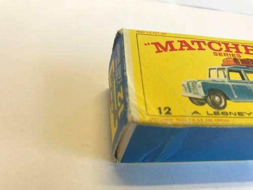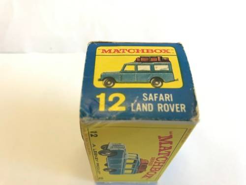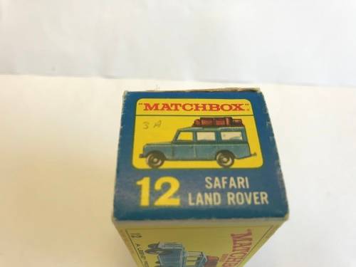 THIS IS A NEAT MATCHBOX #12 SAFARI LAND ROVER WITH THE LIGHT BROWN-TAN RACK AND AN ORIGINAL BOX. THIS HAS SOME MINOR CHIPS/EDGEWEAR BUT OVERALL THIS LOOKS GREAT AND DISPLAYS VERY WELL. THE ORIGINAL BOX HAS SOME SHELFWEAR/CREASES AND THE TWO DISPLAY WELL TOGETHER. THIS WOULD BE A GREAT ADDITION TO YOUR COLLECTION