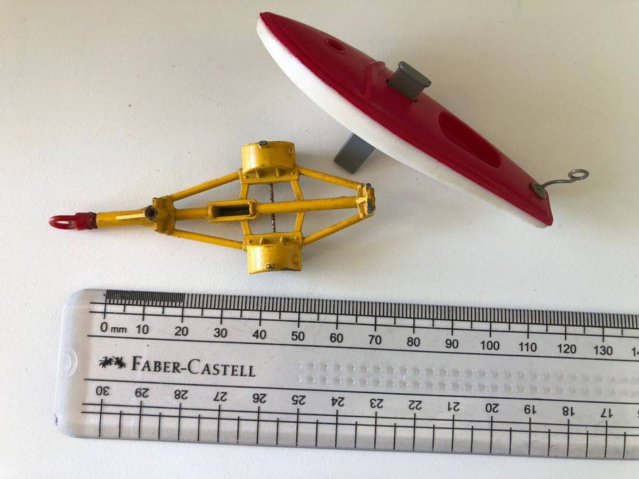 Full Description: A collectible Matchbox Regular Wheels No. 48 Sports Boat & Trailer, made by Lesney Products & Co. Ltd. It features a red plastic boat with a white hull, a grey motor, and a yellow die-cast trailer base. Please see the images for full details.