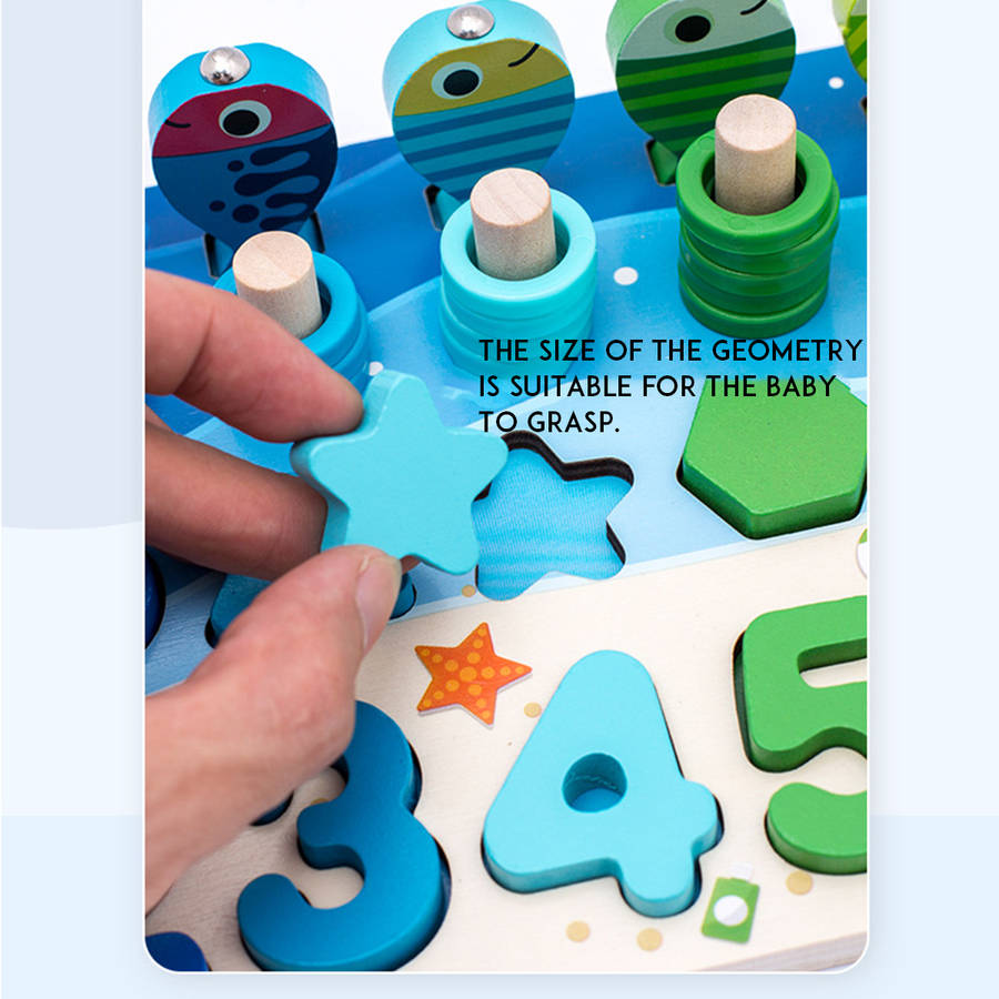 Features: - Fine workmanship. - Can also play fishing games. - A perfect gift for your kids. - Matching game, exercises kids` hand flexibility and help with movement development. - Equiped with common shapes and colors, training your baby`s color and shape recognition ability. - The superior and thickened basswood plywood is adopted, and the edges and corners are polished and polished manually. The wood is firm and resistant to falling, round and smooth without burr.