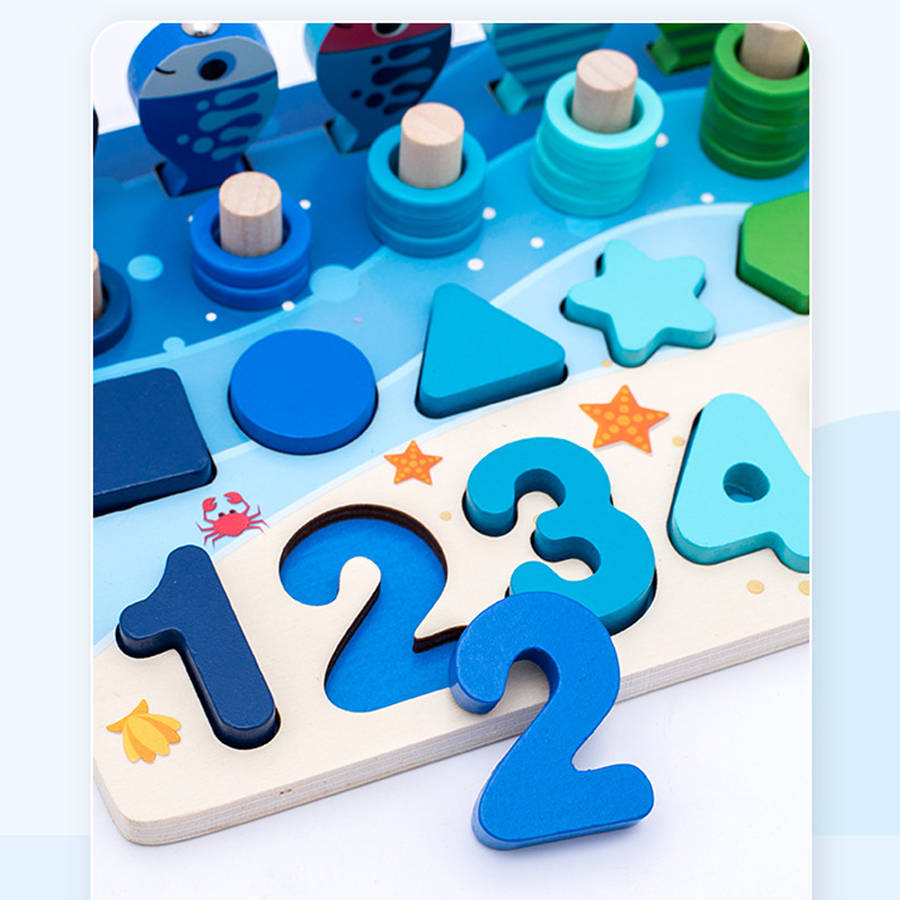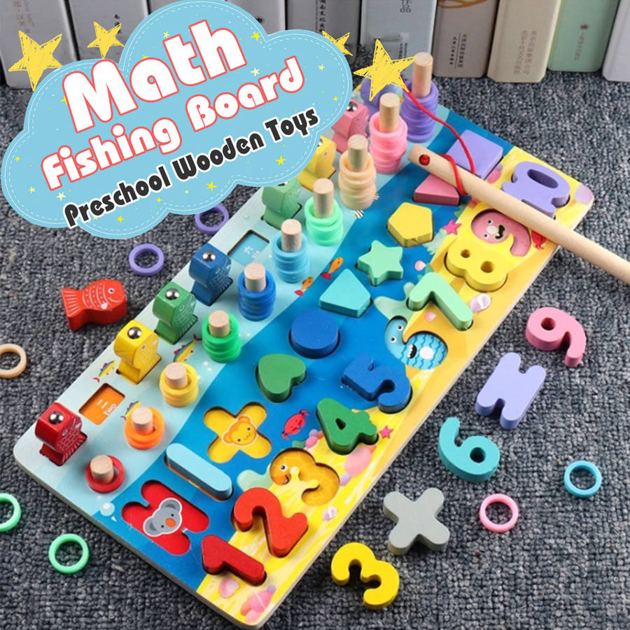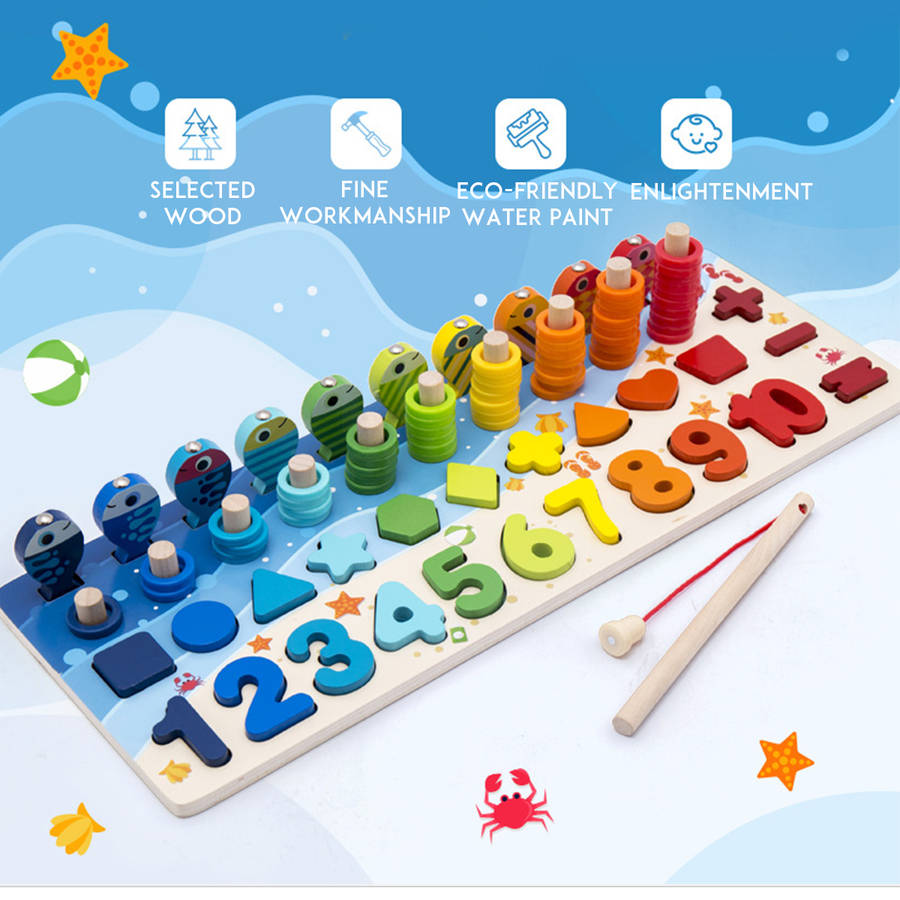 Preschool Wooden Toys Board Math Fishing Count Numbers Matching Digital Shape Cognition Early Education Toys For Children Kids