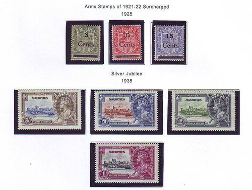 MAURITIUS Arms stamps 1921-22, Sliver Jubilee 1935 All Mint