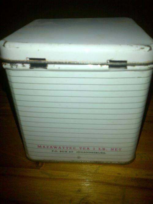 At the back of tin it states: Mazawattee Tea 1lb. Net PO Box 617, Johannesburg