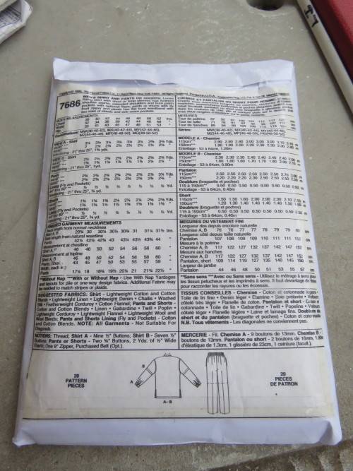 'McCALL's' pattern 7686 in sizes 38-52 for mens shirt and pants or shorts.