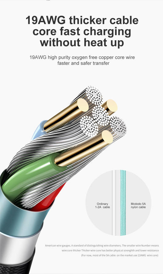 2. 19AWG high purity thicker cable core fast charging without heat up.