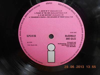Pre King Crimson - Pressed in UK, on pink ISLAND label, E J Day gatefold cover, 1970, ex++ / ex++