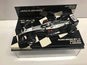 McLaren Mercedes MP4-18 Test Car 2003 Kimi Raikkönen produced by Minichamps. 1/43 in display case.