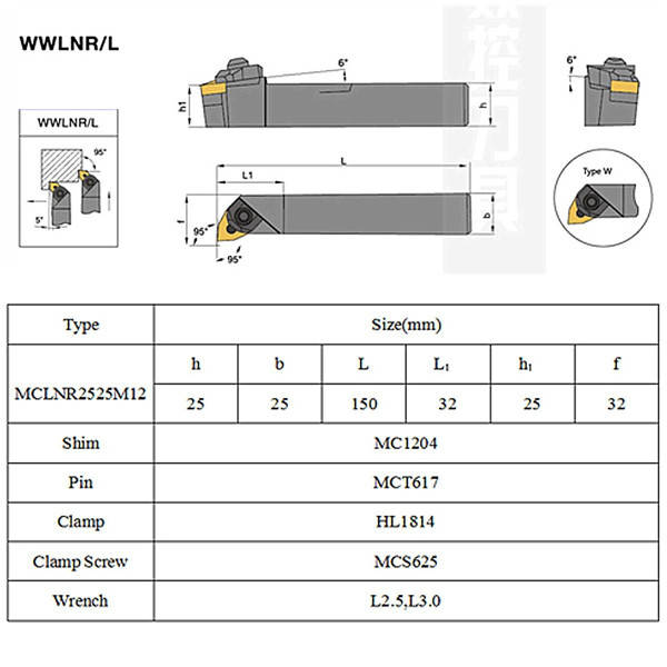 MCLNR2525M12 25x25x150mm Lathe External Turning Tool Holder with 2 Wrenches
