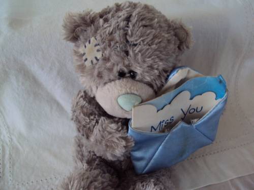 Me to You teddy holding a satin envelope with note MISS YOU - preloved good cond