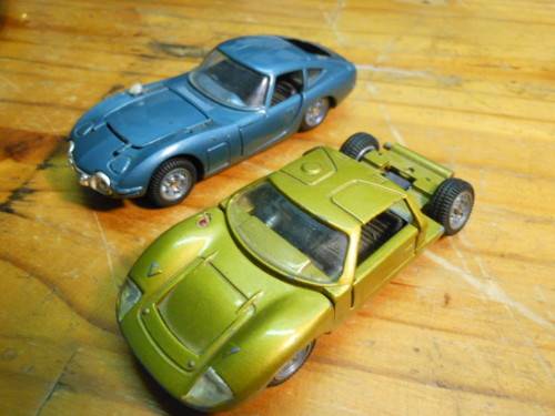 MEBETOYS---TOYOTA AND FORD--LIKE DINKY,CORGI----CARS HAVE MISSING PIECES.
