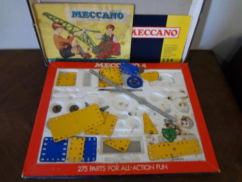 Meccano, number 4, box with lots of pieces missing, with books as per scan