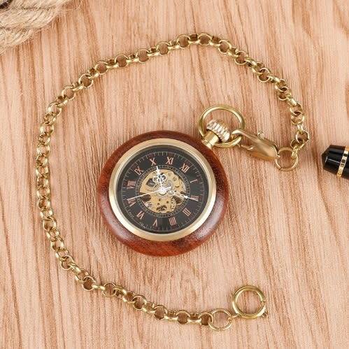 Mechanical Hand Winding Pocket Watch Open Face Wood