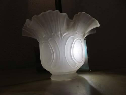 VINTAGE FROSTED GLASS LAMP SHADE (CEILING OR STANDING LAMP) WITH RUFFLED EDGE AND MEDALLION STYLE PATTERNING