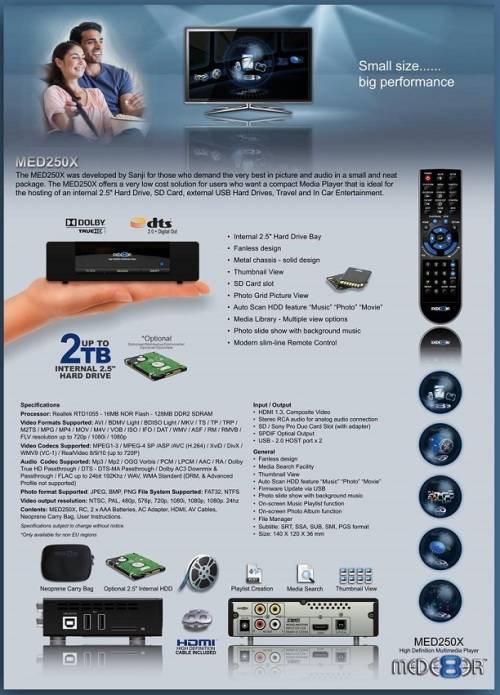 Mede8er MED250X Digital Media Player with built in 2.5" Hard Drive Bay - Brand New Condition