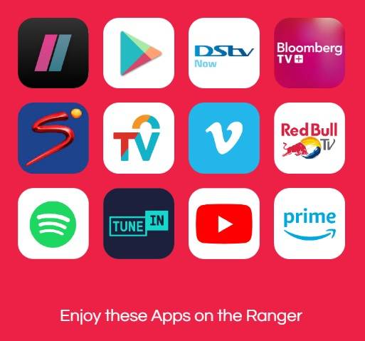 DSTV, Showmax, TVMucho, Redbull TV, Spotify, Bloomberg, YouTube,YouTube Kids, Vimeo, Prime Video.