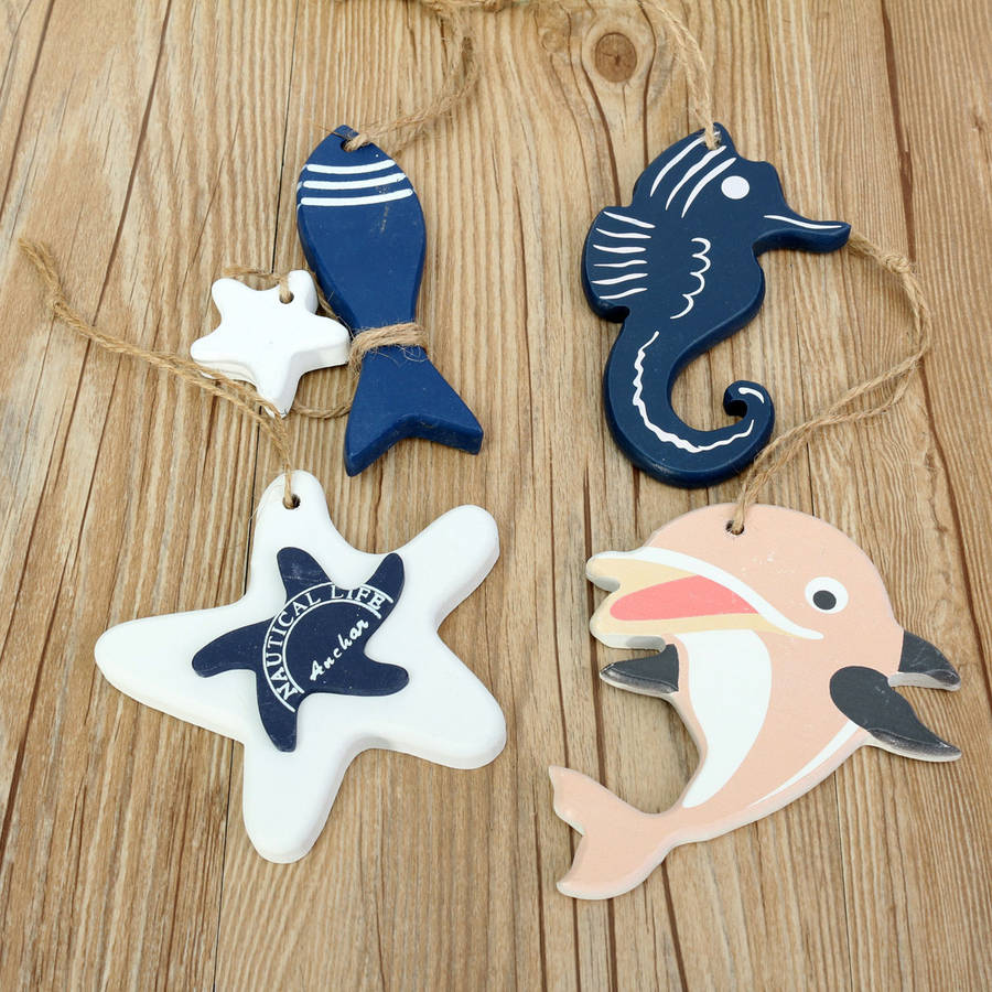 Mediterranean Style Wooden Fish Star Dolphin Hanging Nautical Decor Boat Ship Beach Wall Ornament