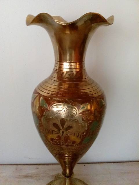 Medium to Large Size Decorative Fluted Brass Vase