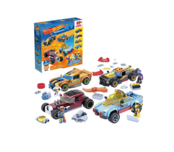 Own the road with a fleet of 4 original Hot Wheels supercars and use the specialized pieces to customize them and create your own hot rods. The construction set features the authentically rad Rally Cat, Dawgzilla, Night Shifter and Mod Rod plus 4 poseable micro action figures to take the driver's seat. Add new details to your favorite cars or mix and match pieces to build brand new rides. The included bricks and pieces can also be combined with any Mega Construx building set to build even more custom cars. Ideal for Wonder Builders, ages 5 and up