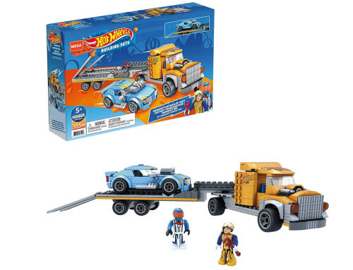 - Hot Wheels® racecar building toy with 2 vehicles; 1 racecar and 1 truck with trailer to haul Twinduction