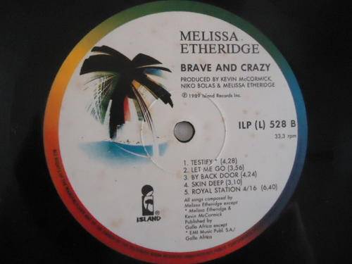 On offer is this MELISSA ETHERIDGE "BRAVE AND CRAZY" 1989 ISLAND STEREO LP WITH A PLASTIC COVER IN EXCELLENT CONDITION