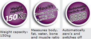 The Bodymax Health Scale measures body fat, water, bone and muscle ratio, giving you all the tools to stay fit and healthy. The calculations are derived from a few simple initial inputs. Then it is as easy as standing on the scale bare foot so that it can measure the fluctuations everyday. The slick design is complimented with the latest technology in health and fitness.