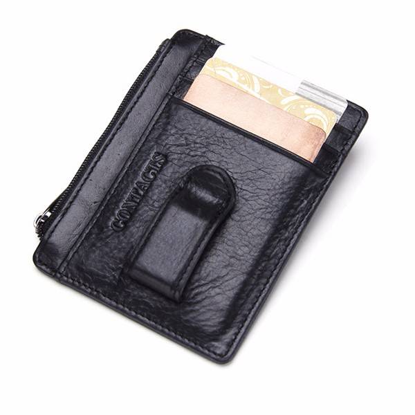 Men Genuine Leather Business Wallet Card Holder Coins Bag Money Clip