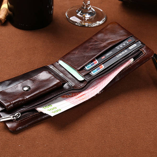 Men Genuine Leather Short Wallet Business Horizontal Wallets