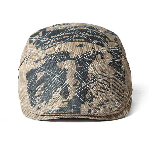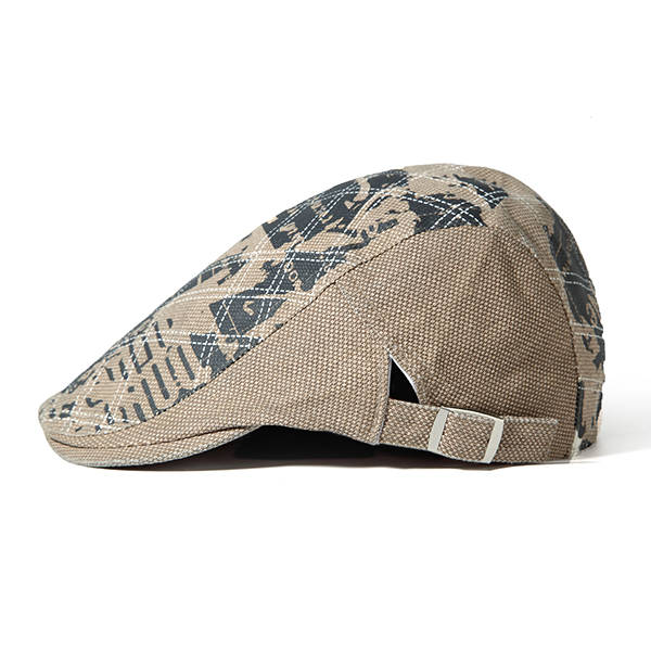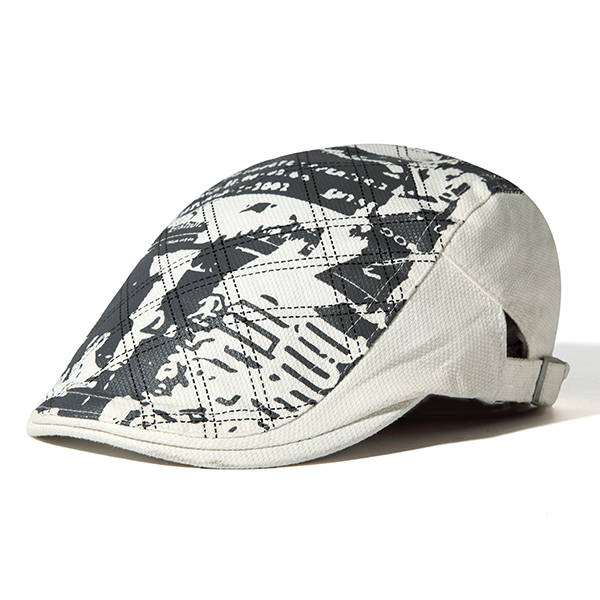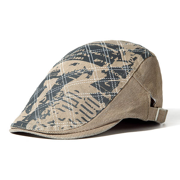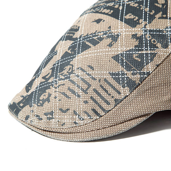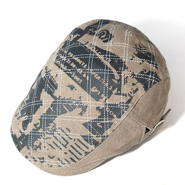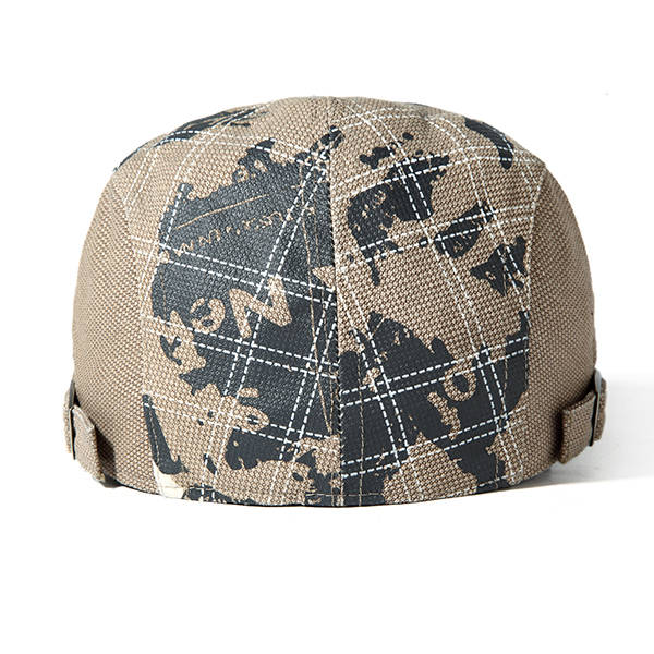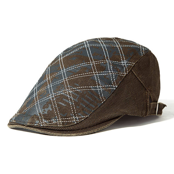 Men Grid Cotton Beret Cap Printed Adjustable Foward Hat Casual Outdoor Visor Ha