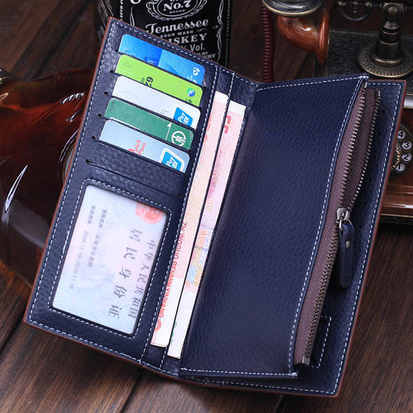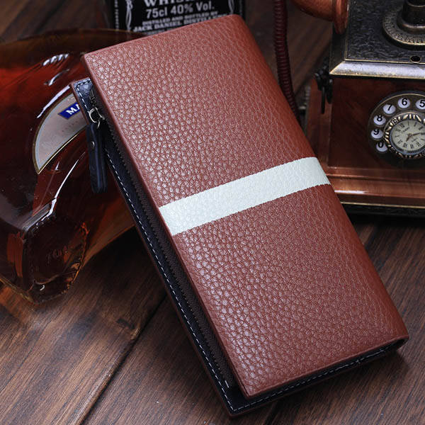 Men Long PU Big Capacity Zipper Card Holder Portable Wallet