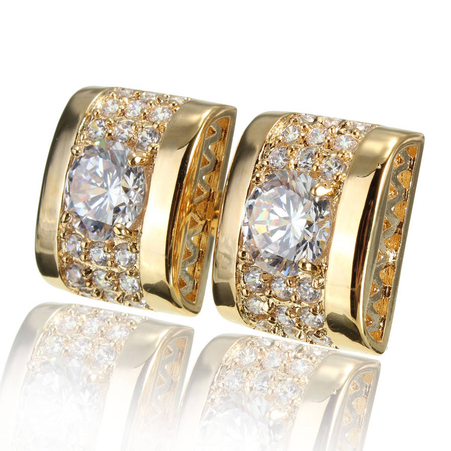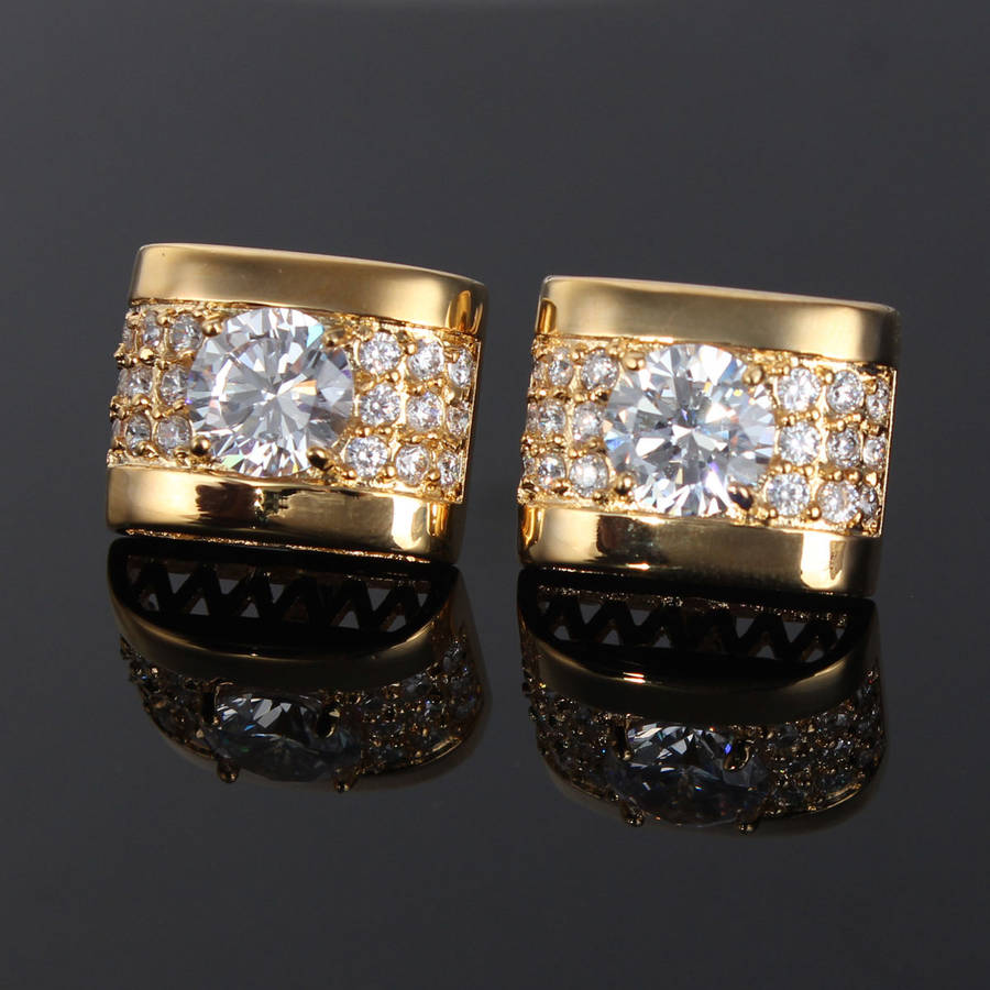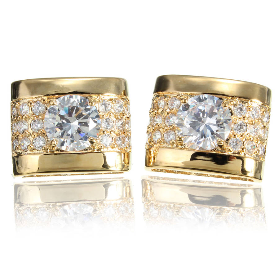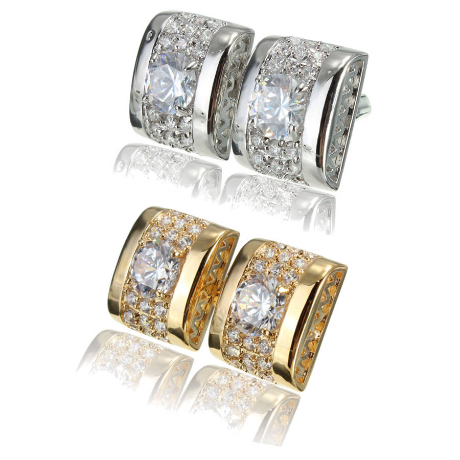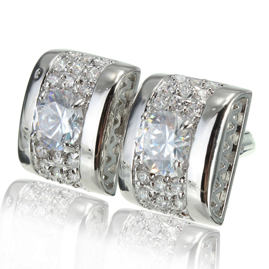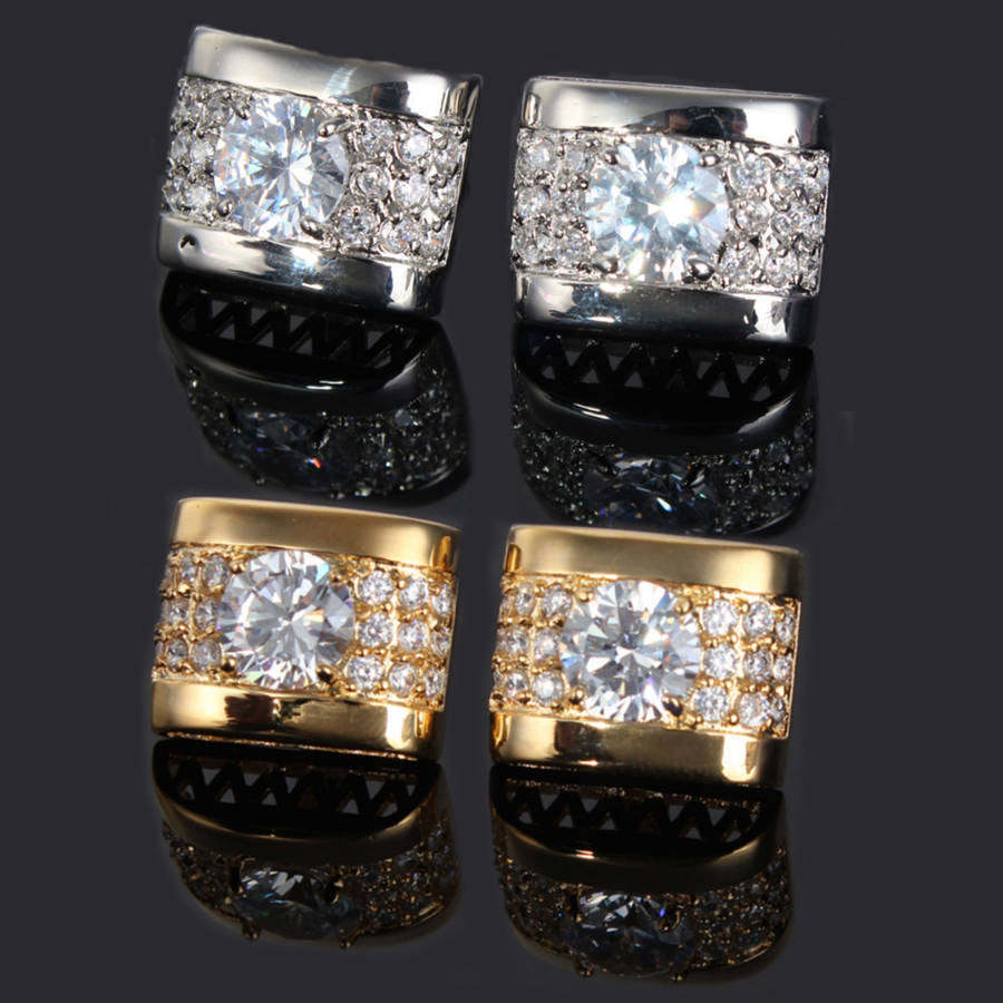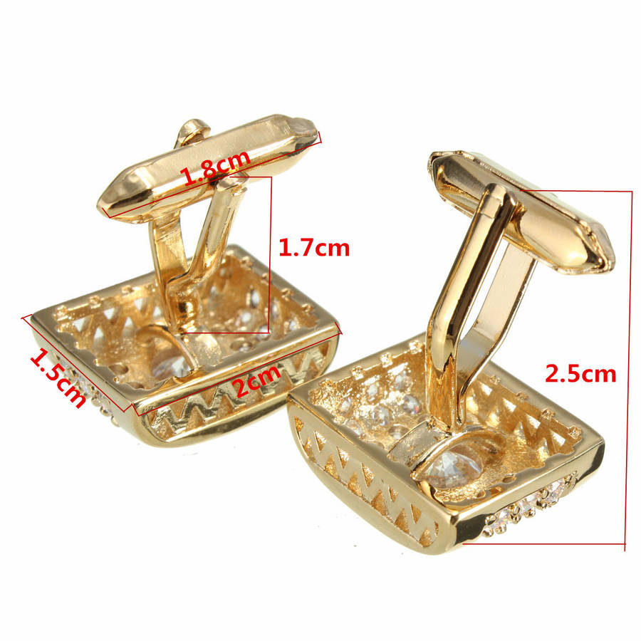 Men Male Golden White Crystal Silver Rectangle Cufflinks Wedding Party Gift Shirt Accessories