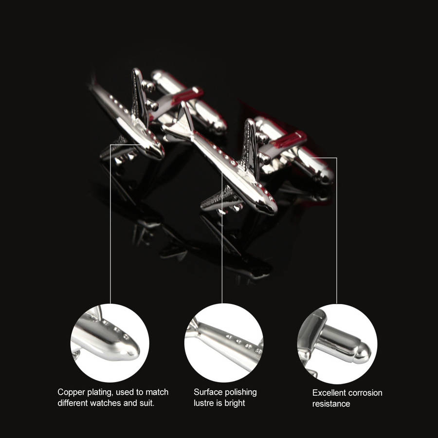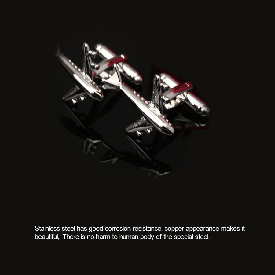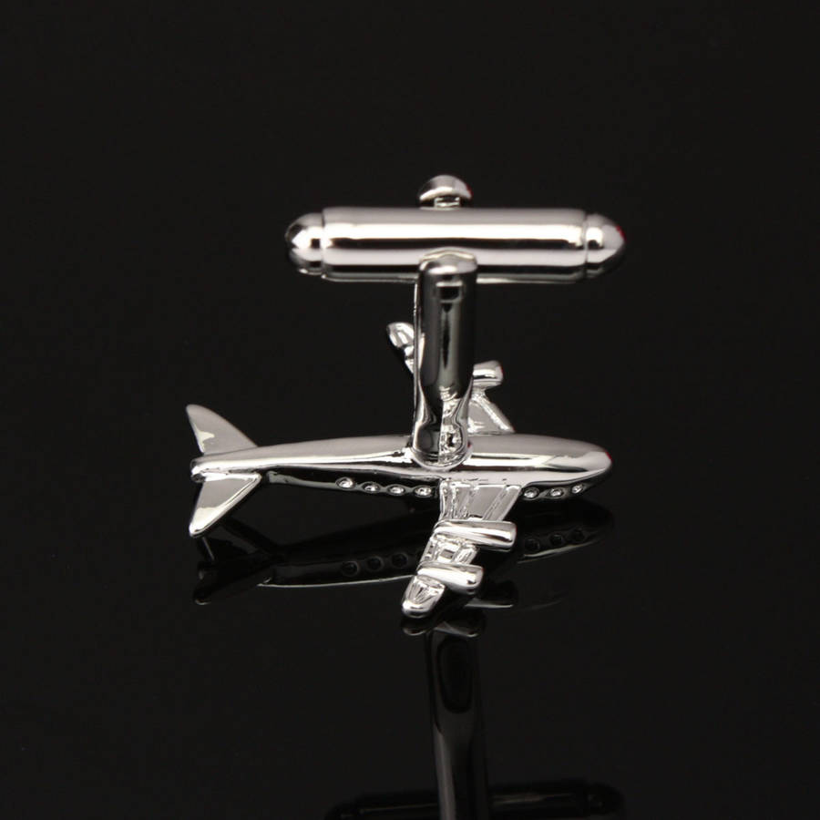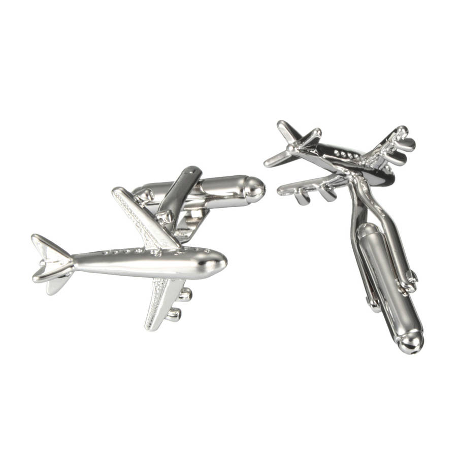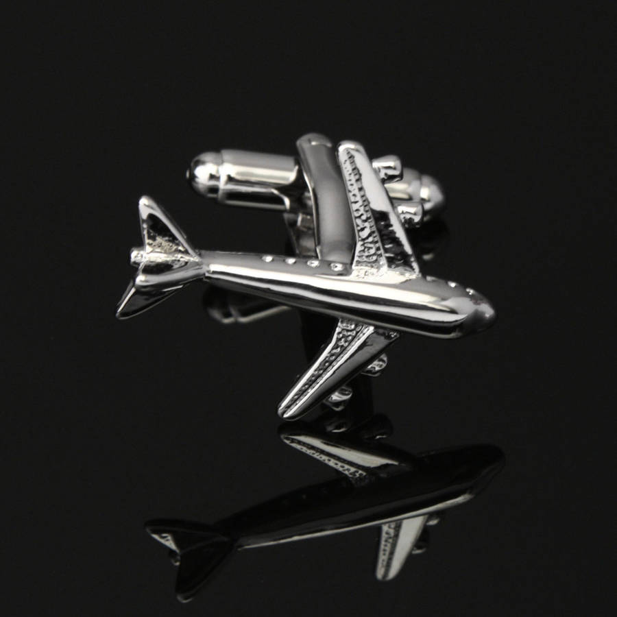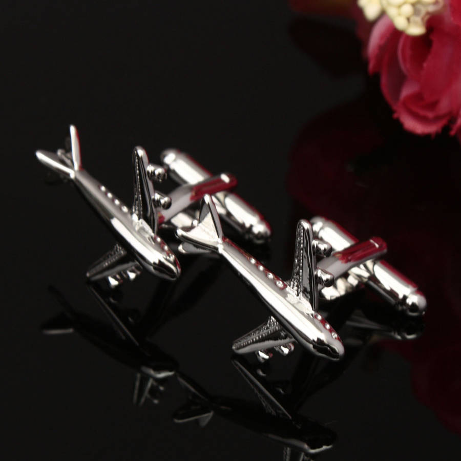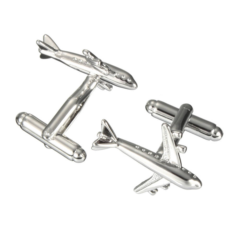 Men Male Silver Airplane Aircraft Pattern Cufflinks Wedding Gift Suit Shirt Accessories