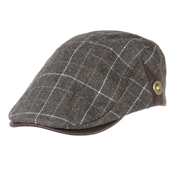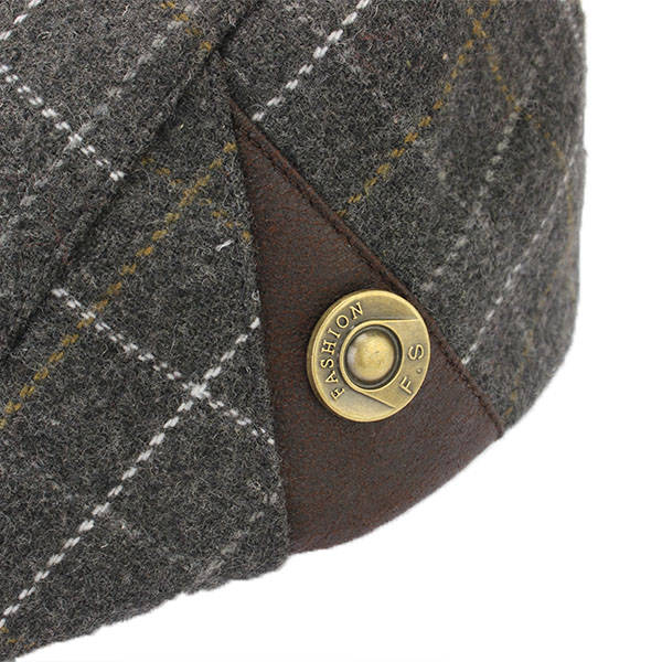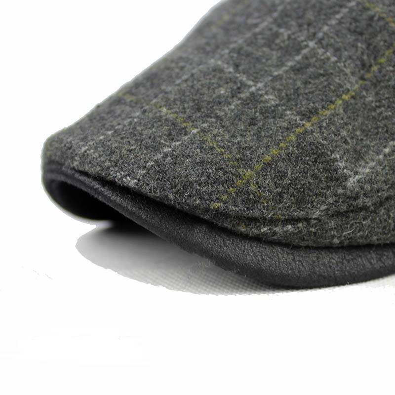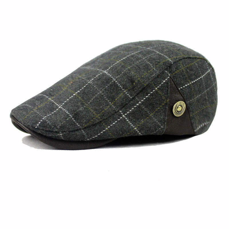 Men Male Wool Blend Newsboy Beret Cap Grid Blank Thick Flat Cowboy Cabbie Hat
